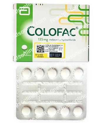 Colofac pills contain Mebeverin hydrochloride as the main ingredient. This drug refers to antispasmodic class of medications. The main chemical substance is used for smooth muscles relaxation in the gut. It helps your organism to relieve severe muscle spasms of the gut saving its usual motility. It is recommended to use for treating gastrointestinal diseases: chronic irritable colon or bowel syndrome, spastic constipation, spastic or mucous colitis.