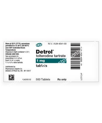 Tolterodine is prescribed for treatment of spasms of the bladder muscles, overactive bladder characterized by symptoms of urinary urgency, frequency, and incontinence.